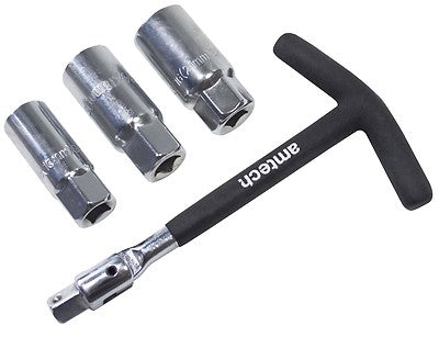 - Set contains 3 x 3/"8 drive spark plug sockets (16, 18 & 21mm) and 1 x T-bar handle