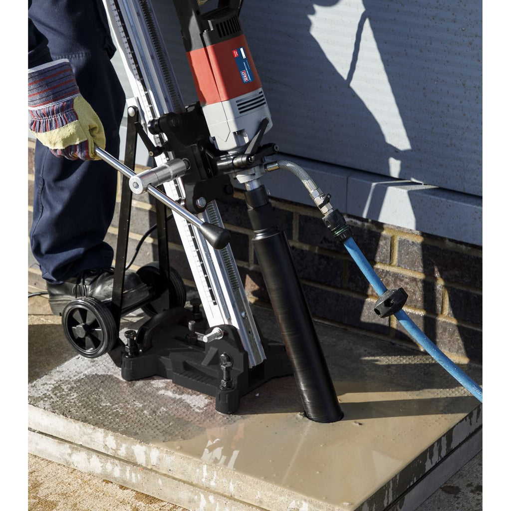 Manufactured using high quality components for performance and reliability. Lightweight and compact unit. Fitted with soft start and overload protection. Designed for use in construction and other applications when working with masonry and concrete. Supplied with adaptor, water cooling kit and side handles. Can be used independently or with optional Model No. DCDST Diamond Core Drill Stand.