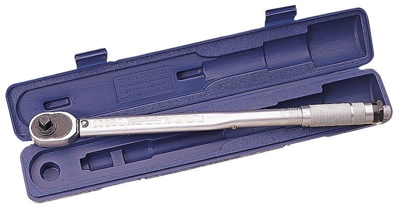 Ratchet head is engraved with Nm and lb - in scales on the barrel of the wrench. The micrometre type sleeve allows accurate preset torque values to be set. When torque is reached the wrench produces an audible click and a release of tension. Marked range: 30 - 210Nm/22.1 - 154.9lb - ft. Overall length 465mm. Clockwise right-hand thread torque application only. Supplied in blow mould storage case.