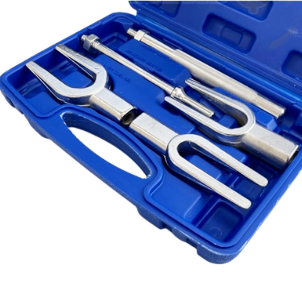 For separating ball joints, tie rods, pitman arms and other uses. Six tools in one for exceptional versatility and value. Kit consists of three forks and two handles; one for hammering, the other for use with an air hammer (.401" shank).