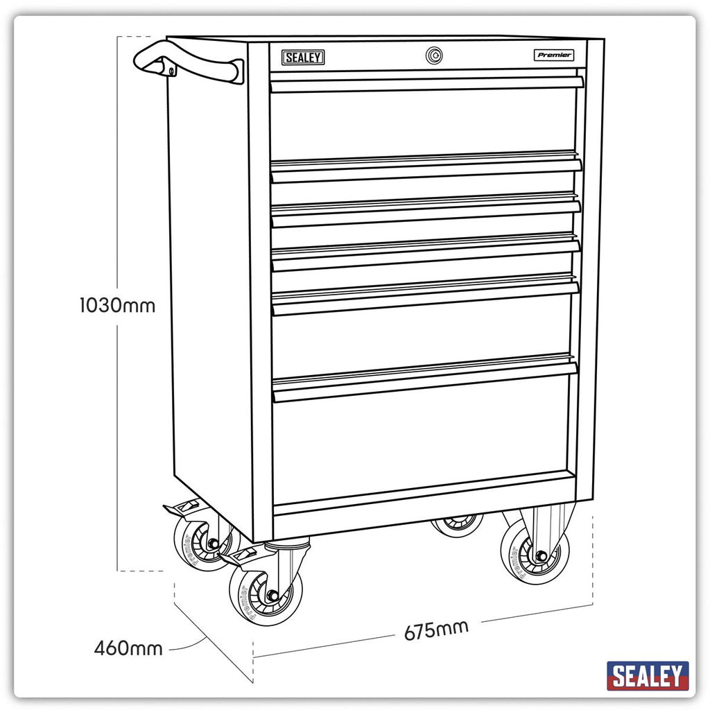 Heavy-duty welded steel construction for strength and durability. Anti-fingerprint stainless steel finish, both solvent and rust resistant. Ball-bearing drawer slides provide superior performance and carry heavier loads, double sets on large drawers. All drawers have full width sand blasted aluminium 'Lift & Latch' drawer pulls, making easy-access while preventing inadvertent opening when box is being moved. Tubular chrome plated exterior side handle. Non-slip drawer liners supplied for all drawers. Heavy-duty 125mm Mag style castors, two swivel with toe brakes and two fixed on rollcabs. Integral locking system locks all drawers with the turn of a key. Supplied with two keys. Use with Model No. PTB66004SS Topchest or as a standalone unit.
