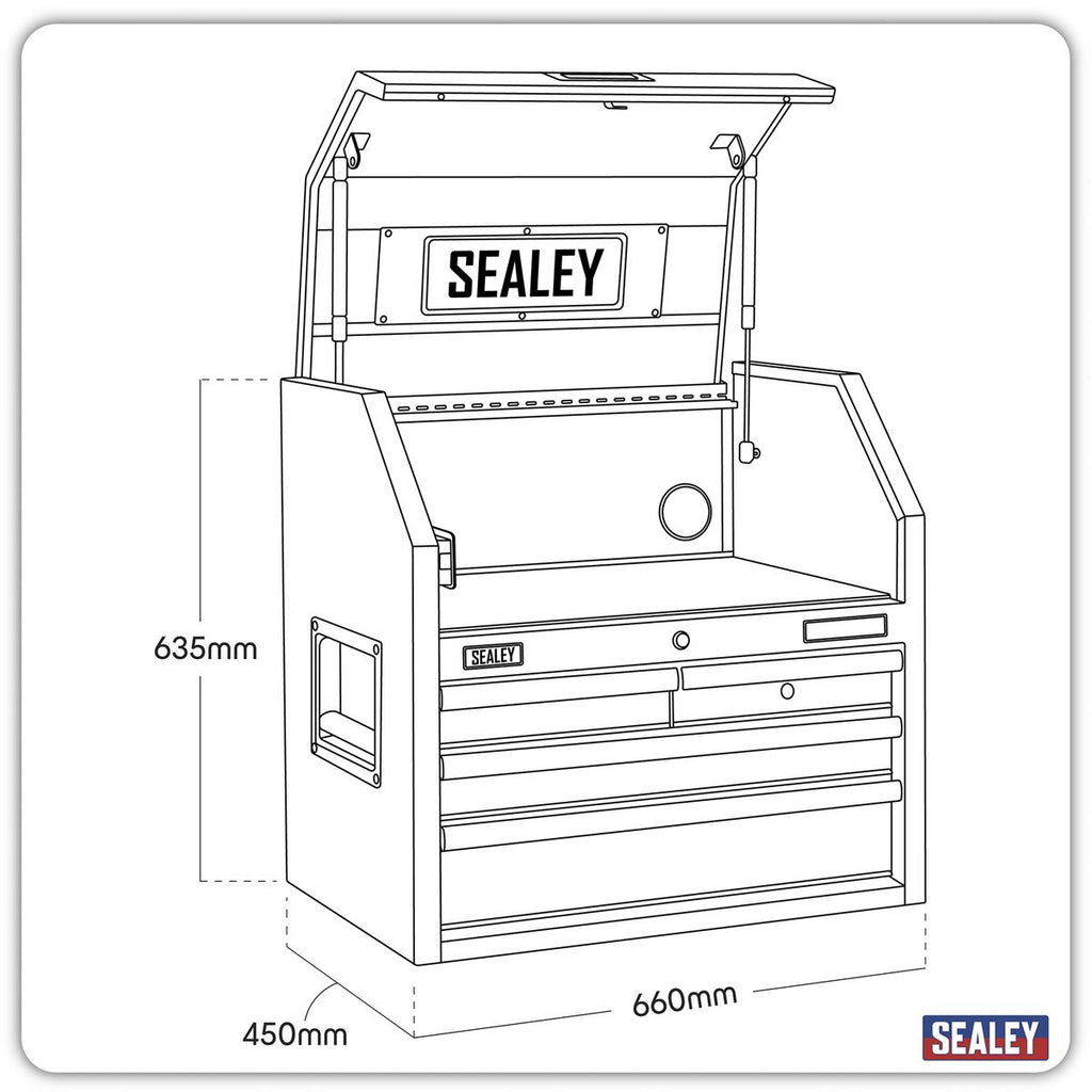 All heavy gauged steel construction and manufactured with steel inner walls for extra strength and durability. Heavy-duty 45mm ball-bearing drawer slides provide superior performance, suitable for heavier loads. Full height rear locking mechanism, locks smooth running soft close drawers in place. Rust and solvent resistant black crinkle effect finish. Clamshell style topchests feature robust side handles and are supplied with a power bar (4x 230V, 1x USB-C and 3x USB) which can be installed on either side. Also features an independent drawer that can be locked separately to other drawers allowing belongings/valuables to be kept safe whilst other drawers are in use. Each drawer features stylish black anodized heavy-duty drawer pulls and pre-cut non-slip liners. Supplied with two folding keys.