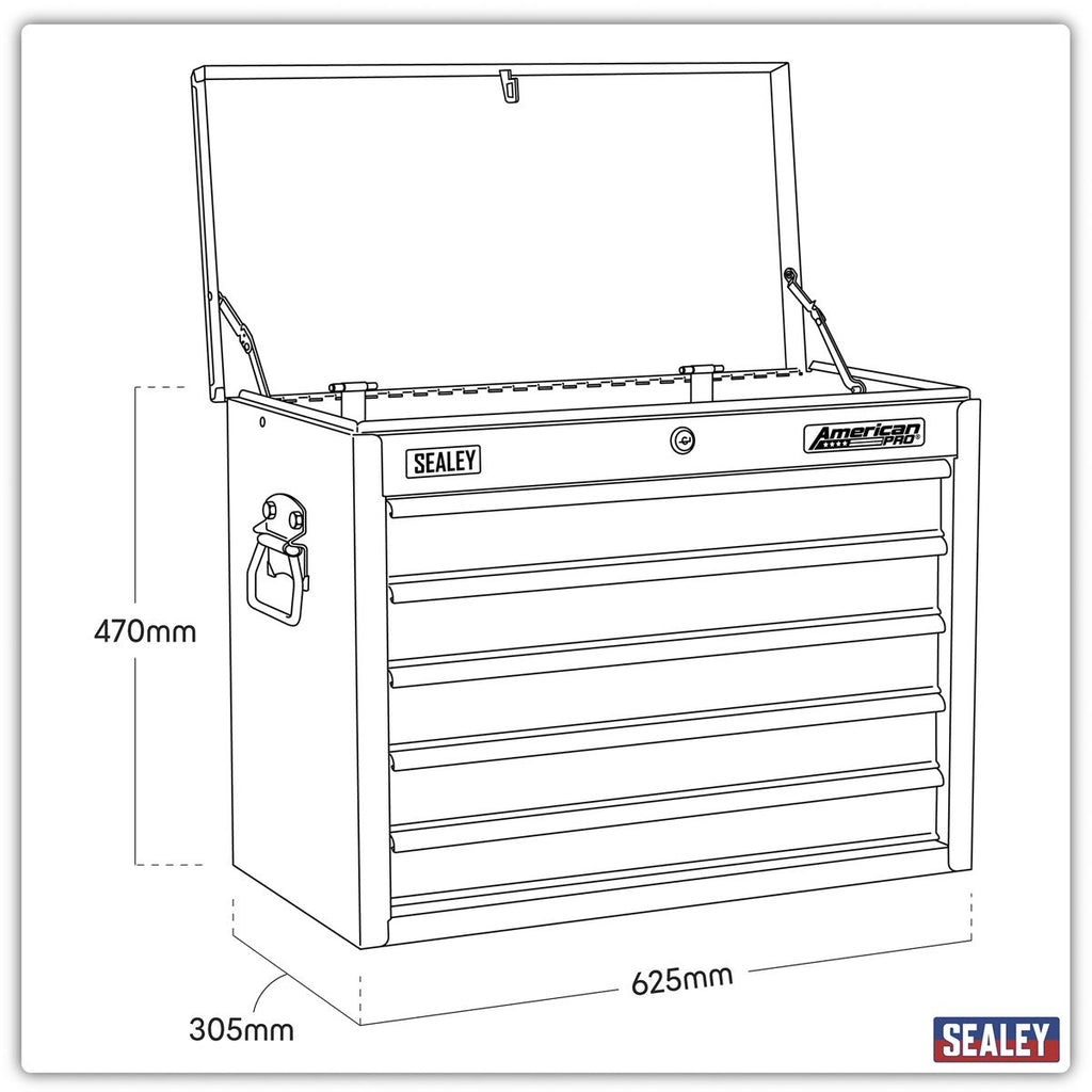 Features drop-down carry handles, smooth ball-bearing drawer slides, cylinder lock and steel bars that can be locked into place to keep drawers shut for additional security. Built-in storage for locking bars when toolbox is in use. All drawers have been specifically sized to accommodate our range of Siegen tool trays. Supplied with two keys.